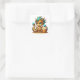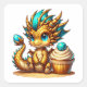 Cute Chibi Gold and Blue Dragon with Cupcake Square Sticker