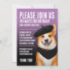 Announce your little one's birthday with this cute invitation, which features AI-generated artwork of a Welsh Corgi Dog, smiling for the camera and smartly outfitted in a chic black beret, black bandana, and brown bowtie.