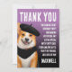 Let your little one's birthday guests know how much they appreciated their gifts and presence with this cute thank you card, which features AI-generated artwork of a Welsh Corgi Dog, smiling for the camera and smartly outfitted in a chic black beret, black bandana, and brown bowtie.