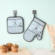 Cute Chic Girly Light Blue and Black Polka Dot Oven Mitt & Pot Holder Set