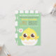 The little one is about to hatch! Celebrate with mommy to be before the big hatch day! This baby shower invitation has a cute little yellow chick hatching from an egg. On the reverse is a egg pattern with the little chick among all the eggs. A simple yet adorable invitation using colours of yellow, orange and brown. Background colour can be changed in customisation mode. Great for baby showers held in the spring April period! Personalise with your baby shower details.
