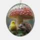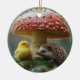 Cute Chick and Hedgehog Hiding Under a Mushroom Ceramic Ornament