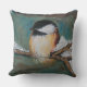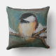 Cute Winter Black Capped Chickadee Throw Pillow. The design on this pillow is of an adorable winter chickadee is a mixed media piece created using acrylics, paper and more. Perfect for the nature and bird lover! This artwork is also available on other products for mixing and matching! Art from Jenn's Emporium.