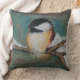 Cute Winter Black Capped Chickadee Throw Pillow. The design on this pillow is of an adorable winter chickadee is a mixed media piece created using acrylics, paper and more. Perfect for the nature and bird lover! This artwork is also available on other products for mixing and matching! Art from Jenn's Emporium.