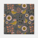 Cute and sweet chickadee bird, berry and flower repeat surface pattern. Multi coloured design: pink, grey, black, rust, and gold on dark grey palette. Design by Jenn's Emporium.