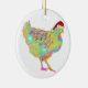 Christmas Santa Chicken in Quirky Festive elf hat. Colourful Farm Hen festive Christmas tree decoration to brighten up the holiday season and the ideal gift for farm animal and chicken loving family and friends. This funky hen in vibrant green, yellow, orange, purple, aqua and wearing a cute red and cream Santa hat funny festive tree decoration. Quirky farm hen by artist Catherine Sweetman