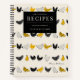 Modern Family Recipe Notebook with a simple illustration of chickens in shades of yellow, white and black. The back side is customizable with your favourite family photo or signature recipe photo.