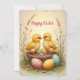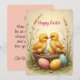 Cute chicks and colorful Easter eggs, nostalgic Holiday Card