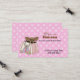 Cute pink polka dot play date / mommy card, with whimsical graphics of a Chihuahua, in a purse. All text is fully customizable for you to personalize with what ever you want it to say. Great for arranging play dates, parties, and sleep overs.