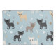 Cute Chihuahuas Pattern, Dog Bones and Paw-prints on a Blue Background. Tan, Fawn, Black, Black and White Chihuahuas.