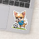 Add some sporty charm to your belongings with this adorable kawaii chihuahua playing soccer! This custom kiss cut sticker is perfect for decorating laptops, water bottles, journals, and more. Made with durable vinyl for long-lasting colour and cuteness.