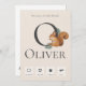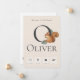 Announce the arrival of your new baby with this adorable forest animal birth stats announcement card. The design features a cute chipmunk with greenery leaves and little icons of a calendar, clock, scale, and tape measure. Customize with baby's initial, name, birthdate, time, weight, and length. The reverse side has the parents' signature.