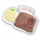 A cute and sweet sticker love declaration with doodle a chocolate molten cake declaring its love for vanilla ice cream by showing its melted chocolate fillings filled with tiny hearts. Pun caption reads "I Lava You!"