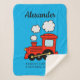 Cute choo choo former la couverture de sherpa bébé avec le nom. Couverture en toison sur mesure avec locomotive disponible en petite, moyenne ou grande taille. Jolie conception ferroviaire pour le nouveau bébé. Couleur arrière - plan bleu solide. Confiez la vente d'accessoires de déco maison pour la crèche ou la chambre pour enfants. Un cadeau de décoration élégant pour le nouveau-né et les nouveaux parents. Des cadeaux de baby shower personnalisés pour petits-enfants, petits-fils, fils ou neveu. Ajoutez vos propres détails de naissance, date, poids, longueur, hauteur, nom, citation amusante, citation inspirante, slogan ou expression amusante. Disponible en grandes et petites tailles. Extrêmement doux et câlin ! Conception adorable pour les enfants avec typographie de script de brosse pour les petits nourrissons.