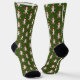 This awesome pair of patterned Christmas crew socks features a digital art image of a cute Christmas Axolotl. The Axolotl is pale pink with bright pink gills. It is holding a red and white striped candy cane in each hand and is wearing a festive Red and white Santa hat. The axolotl is type of Salamander from Mexico.
