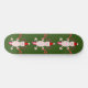 This awesome skateboard features a digital art image of a cute Christmas Axolotl. The Axolotl is pale pink with bright pink gills. It is holding a red and white striped candy cane in each hand and is wearing a festive Red and white Santa hat. The axolotl is type of Salamander from Mexico.