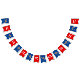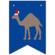 This awesome Christmas bunting features a digital art image of a cute sandy brown coloured Dromedary Camel with beautiful long eyelashes and a single hump on its back. The camel is dressed ready for celebrating Christmas with a red and white Santa hat on its head. The camel features in the Bible and is a traditional symbol of Christmas. There is custom text on alternating flags so you can include a message. The default message reads Happy Holidays.