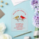 This awesome acrylic Christmas Party invitation features a pretty pair of Northern Cardinals. The male bird is bright red with a red crest on its head and the female bird is a brownish yellow colour with some red on her wings and tail. Both birds have a red beak. The birds are standing on a brown branch covered in festive red berries making this a beautiful Christmas design, especially for couples. There is custom text so you can personalize this design with all the party details.