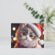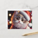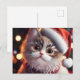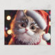 Cute Christmas Cat in Santa's Red Hat Holiday Postcard
