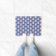 This awesome patterned doormat features a digital art image of a cute Christmas Siamese Cat with beautiful blue eyes, brown claws, ears and whiskers and its front paws raised in the air. The cat is wearing a red collar with pretty white snowflakes on it and a beautiful golden bell. The cat is wearing a warm red bobble hat with white snowflakes on it to keep it warm in the winter cold.