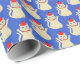 This awesome patterned Christmas wrapping paper features a digital art image of a cute Christmas Siamese Cat with beautiful blue eyes, brown claws, ears and whiskers and its front paws raised in the air. The cat is wearing a red collar with pretty white snowflakes on it and a beautiful golden bell. The cat is wearing a warm red bobble hat with white snowflakes on it to keep it warm in the winter cold.