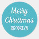 Cute Christmas Custom Kids Name Typography Teal Classic Round Sticker