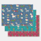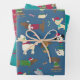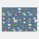 Cute Christmas Dogs Cartoon Pattern Red Blue Wrapping Paper Sheets