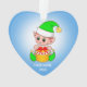Cute Christmas elf, custom name on light blue Heart Ornament.