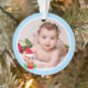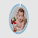 Cute Christmas Elf & Custom Photo on Light Blue Ornament