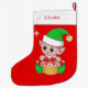 Cute Christmas elf & gift box on red Large Christmas Stocking