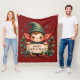 Cute Christmas Elf Holding Merry Sign Red Fleece Blanket