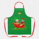 Christmas els on Christmas sleigh with presents on green Apron. Text can be personalized. Elves bring love, good fortune and wisdom! Merry Christmas!