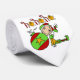 A cute Christmas holiday design features an elf dressed in a red stocking cap and pointy elf shoes resting against a tree ornament ball and candy cane striped text reads Ho Ho Ho on holiday T-shirts, mugs, bags, sweatshirts, keepsakes, buttons, magnets, stickers, and more!