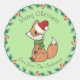 Cute Christmas Fox and Wreath Custom Text Classic Round Sticker
