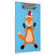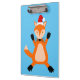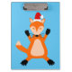 This awesome clipboard features a digital art image of a cute Christmas Fox. The fox is orange with white with a bushy tail, black whiskers and a black nose. It also has beautiful yellow eyes. and is wearing a red and white Santa hat on its head.