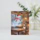 Cute Christmas Ghost Serves Cat in a Coffee shop Postcard