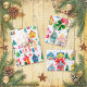 Cute Christmas houses that are so festive and colourful decorate these wrapping paper sheets. They form fun scenes of wintry lanes of little homes in the white snow, intermixed with star-topped decorated trees. The watercolor patterns have a retro origin, so popular today. Each of the three papers has a different scene, that work very well together as a set or individually.