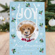 Spread a little joy this holiday season with a personalized gift bag! This fun Christmas template showcases two of your favourite photos, and is personalized with the recipient's name, your family name, or the holiday year. A stylish, modern design featuring circle-shaped frames set against a festive background of leaves, berries, snowflakes, and stars, with decorative typography, and a trendy script font. Perfect for photos of kids, family, friends, and pets. This festive gift bag is available with a matte or glossy finish. Printed colours: pastel blue, red, green, white, and gold.