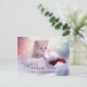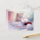 A Christmas thank you postcard with a photograph of a ginger kitten sitting on a soft white and red Santa hat. Blurry glittering lights bokeh background. Personalize the front, and also personalize the message on the back.