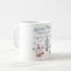 This festive Christmas coffee mug features an cute winter woodland theme. An image of a two little mice are pictured standing next to a Christmas tree, beneath colourful lights and snowflakes. A "Merry Christmas" greeting is printed at the top, followed by a sample family name. You can personalize the mug to include your own custom name or text.
