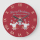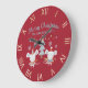Cute Christmas Mice and Tree on Burgundy Red Large Clock