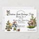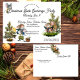 A postcard invitation for a Christmas Party (this is a book club exchange event) features watercolor depictions of fully-clothed mice decorating a mouse-sized tree with a cheese star, seeds and nuts while another mouse sits in the shell of a walnut, with an open book. His seat is backed by an evergreen sprig. But house mouses are everywhere and one is climbing on the "C" in "Christmas Book Exchange Party". He's wearing a yellow shirt and fluffy green pantaloons from which his tail dangles. It is simple to substitute your event details for our placeholders. Just click "Personalize" and get started. The back features the usual postcard format with your return address, a personal message and "Kindly Deliver To:" in the same fonts. In the centre is a (small) watercolor scene of two mice sledding in the snow. Two contrasting playful fonts (in black) have been selected for this fun Christmas Party Invitation.