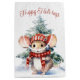Watercolor Christmas mouse with pine tree in snowflakes.