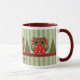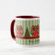 Are you looking for a cute Christmas gift? Perhaps this mug is the one you like to buy. The green and red owls are decorated in Christmas style and seperated from each other by little geometric christmas trees. The mug has a striped background. The text "Merry Christmas" is a template object and can be changed easily into any other text. It is possible to change the size and / or colour of the fonts. You even can chose a different font type.
