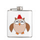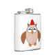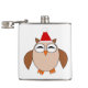 This awesome flask features a funny cartoon of a Christmas owl with sleepy eyes, a small orange beak and cute little orange feet. The owl is brown with a cream belly and is wearing a red and white Santa hat ready for Christmas.