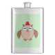 This awesome flask features a funny cartoon of a Christmas owl with sleepy eyes, a small orange beak and cute little orange feet. The owl is brown with a cream belly and is wearing a red and white Santa hat ready for Christmas.