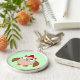 This cute keychain features a funny cartoon of a Christmas owl with sleepy eyes, a small orange beak and cute little orange feet. The owl is brown with a cream belly and is wearing a red and white Santa hat ready for Christmas.