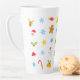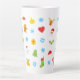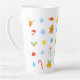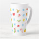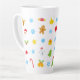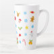 Cute Christmas pattern Latte Mug with christmas tree, santa claus, snowflakes, reindeer, sweets, gifts, candies, sock, snowman, snowman hat