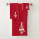 Cute Christmas Peace Tree Custom Initial Red Bath Towel Set