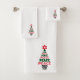 Cute Christmas Peace Tree Custom Initial White Bath Towel Set